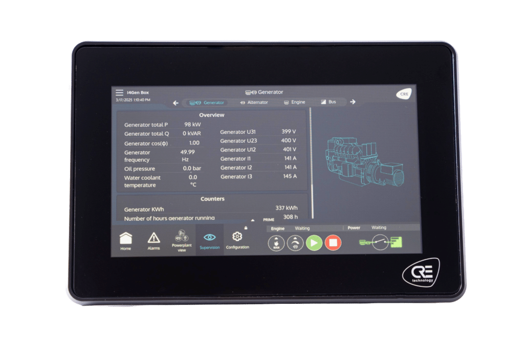 Développé par CRE TECHNOLOGY, l’IHM I4Gen est une solution de supervision complète et performante, dédiée aux contrôleurs de la gamme COMPACT. Son écran couleur tactile robuste garantit une utilisation fluide, même dans les environnements industriels les plus exigeants. Son interface ergonomique et intuitive facilite la mise en service et la surveillance de vos installations.