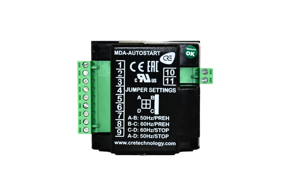 Le module MDA démarre et arrête automatiquement les groupes électrogènes via un contact externe. Il s’interface facilement avec les modèles diesel à l’aide d’un relais.