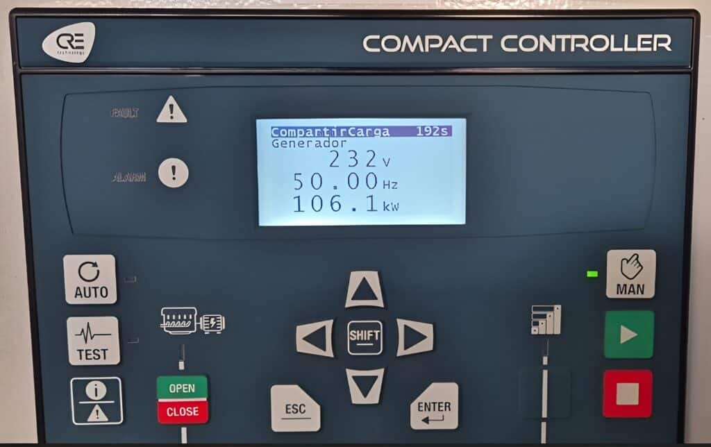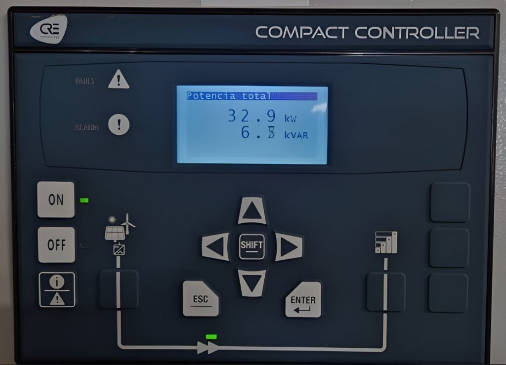 Cette solution repose sur l’utilisation d’équipements de contrôle de la gamme COMPACT, assurant la gestion à la fois des groupes électrogènes et des onduleurs photovoltaïques.