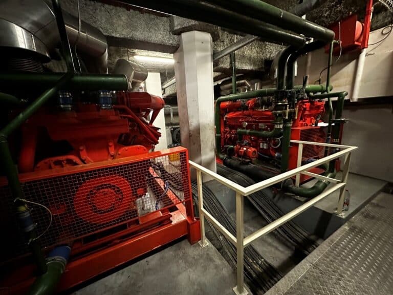 - Groupes électrogènes : 2 x GE Cummins KTA50 G2 de 1500 kVA chacun, synchronisés pour une puissance totale de 2,4 MW.