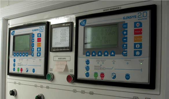 Afin d’apporter la solution de couplage et de transfert de charge au quai CRE TECHNOLOGY a mis un système de synchronisation automatique géré depuis les GENSYS 2.0 MARINE :