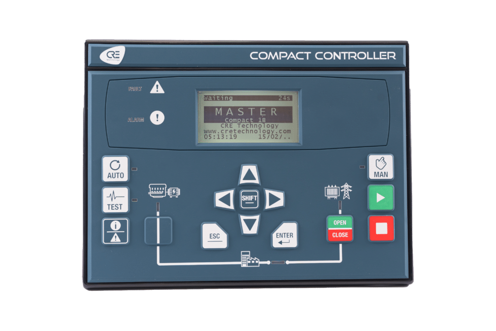 Il appartient à une gamme complète de contrôleurs pour la gestion des sources d’énergie et des centrales électriques : générateurs, réseaux, photovoltaïques/éoliens, batteries de stockage, disjoncteurs de traverse (tie breakers). Ce contrôleur est utilisé pour gérer les centrales électriques de 1 à 32 générateurs en parallèles au réseau. Le MASTER COMPACT 1B convient aux applications avec 1 disjoncteur (pas de disjoncteur sur bus).