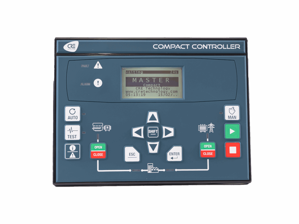 Il appartient à une gamme complète de contrôleurs pour la gestion des sources d’énergie et des centrales électriques : générateurs, réseaux, photovoltaïques/éoliens, batteries de stockage, disjoncteurs de traverse (tie breakers). Ce contrôleur est utilisé pour gérer les centrales électriques de 1 à 32 générateurs en parallèles au réseau. Le MASTER COMPACT convient aux applications avec 2 disjoncteurs (bus et réseau).