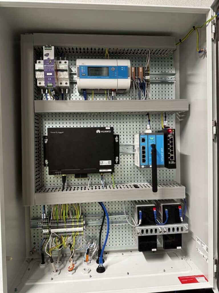 - 1 x HYBRID COMPACT : Pilote les 24 onduleurs solaires par l’intermédiaire d’un centralisateur propriétaire (le Smart Logger 3000). Il optimise la production photovoltaïque, et évite toute injection non souhaitée sur le réseau.