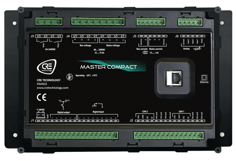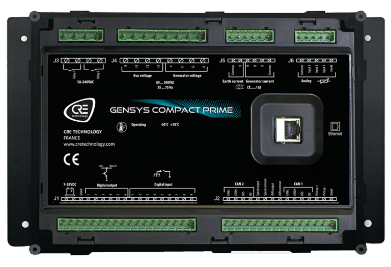 - 1 x GENSYS COMPACT PRIME : Contrôle le générateur, gère le démarrage, la synchronisation et protège contre les retours de puissance.