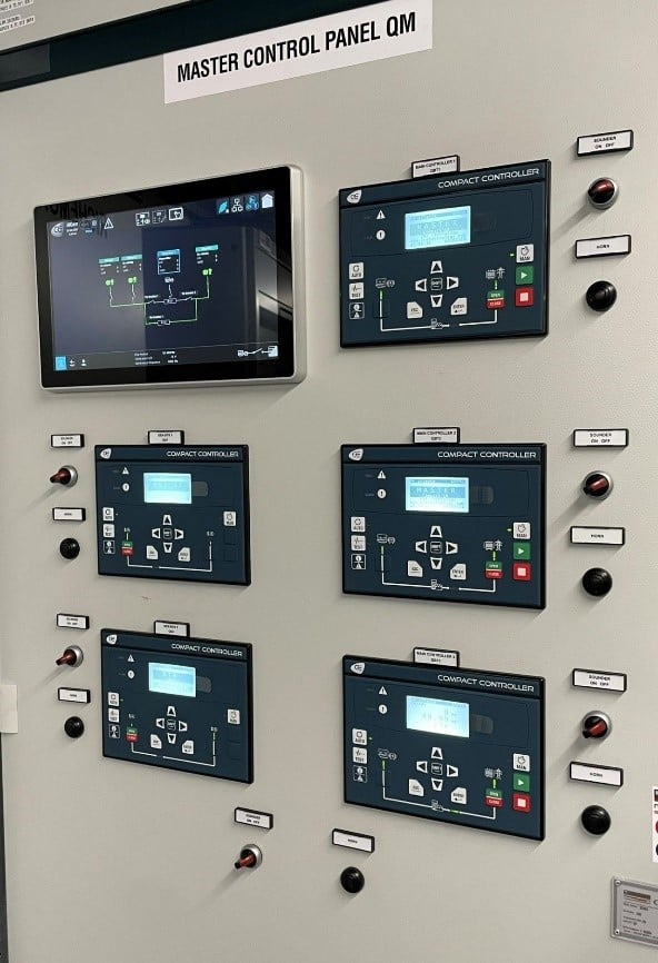 - 1 x GENSYS COMPACT PRIME: Contrôle le générateur, gère le démarrage, la synchronisation et protège contre les retours de puissance.